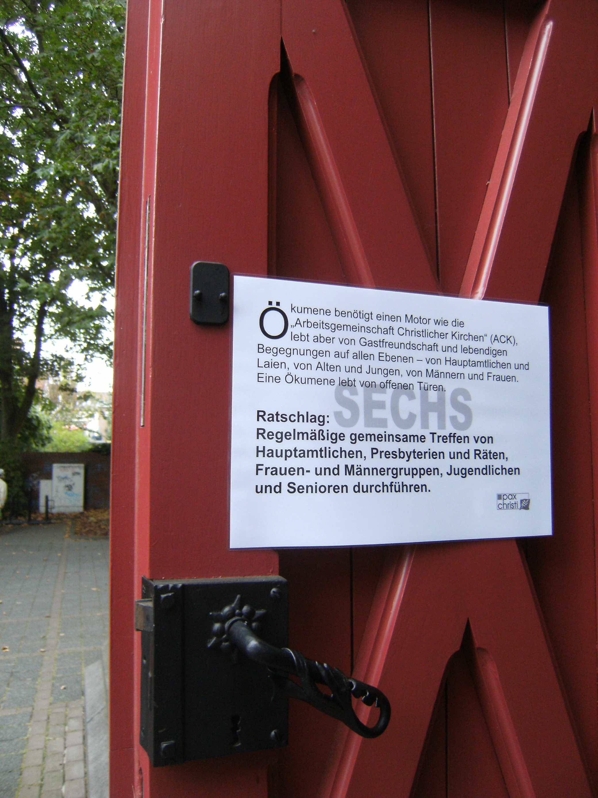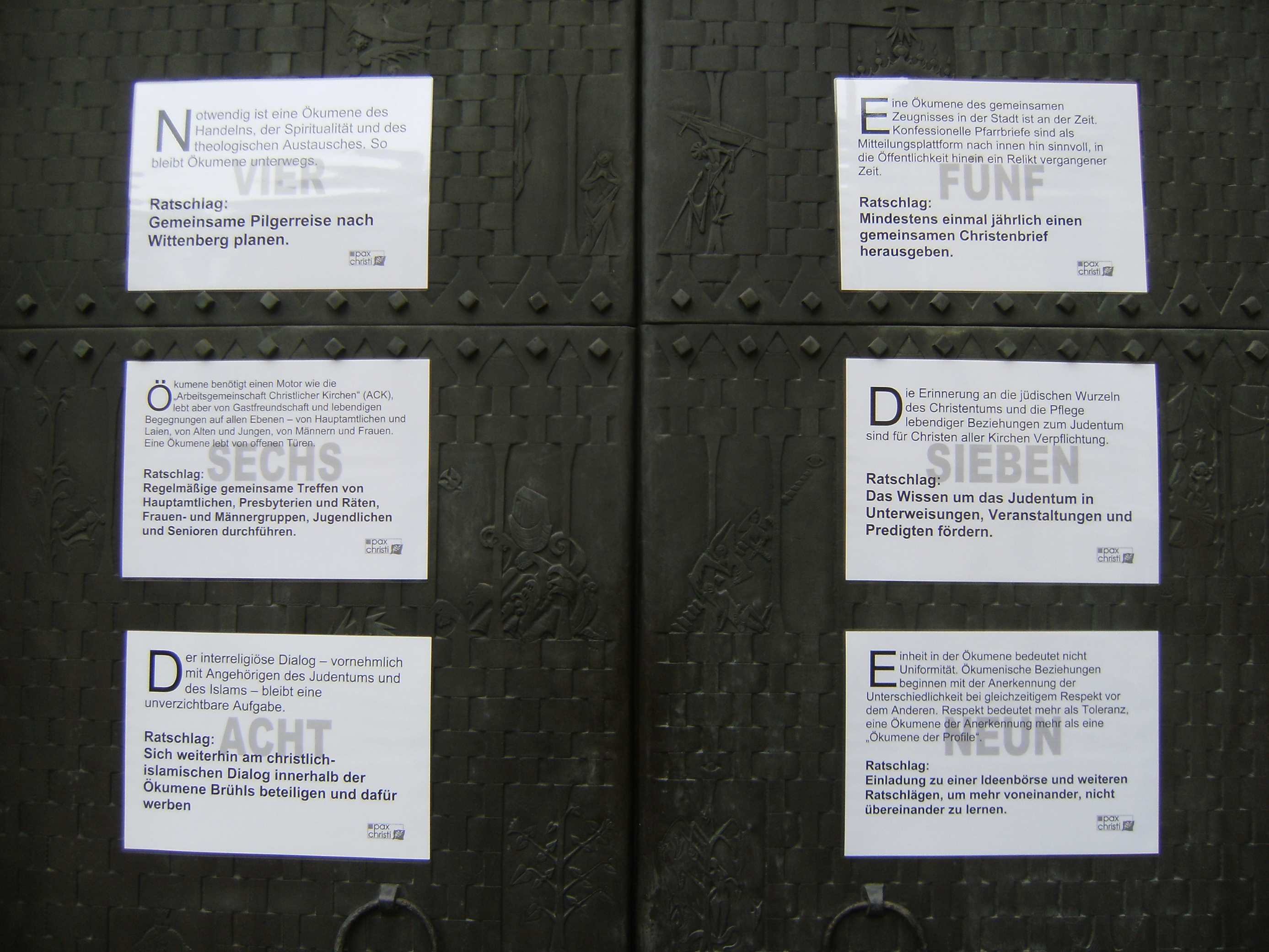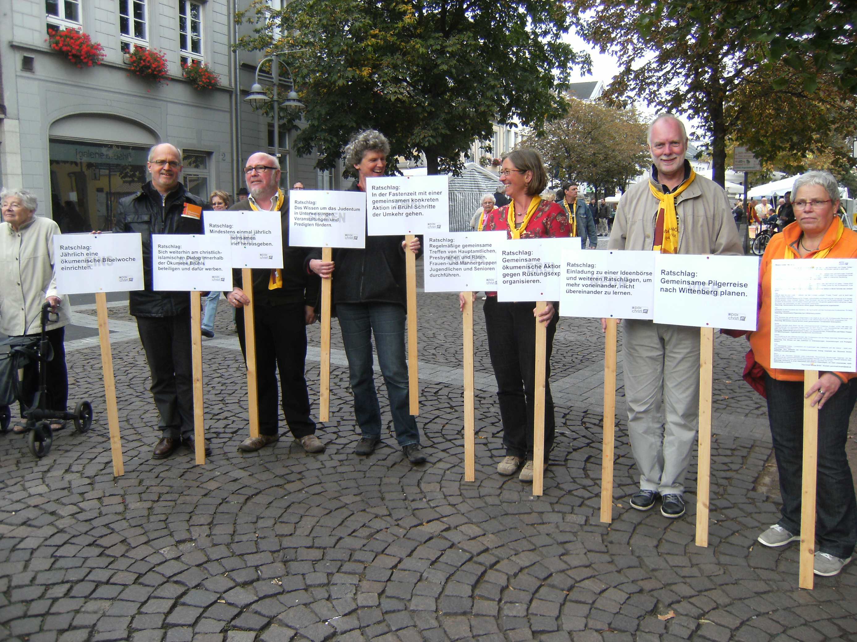 Pax Christi Brühl beteiligte sich mit einem Thesenanschlag am Ökumenischen Kirchentag, der am 23. September 2012 in Brühl stattfand.