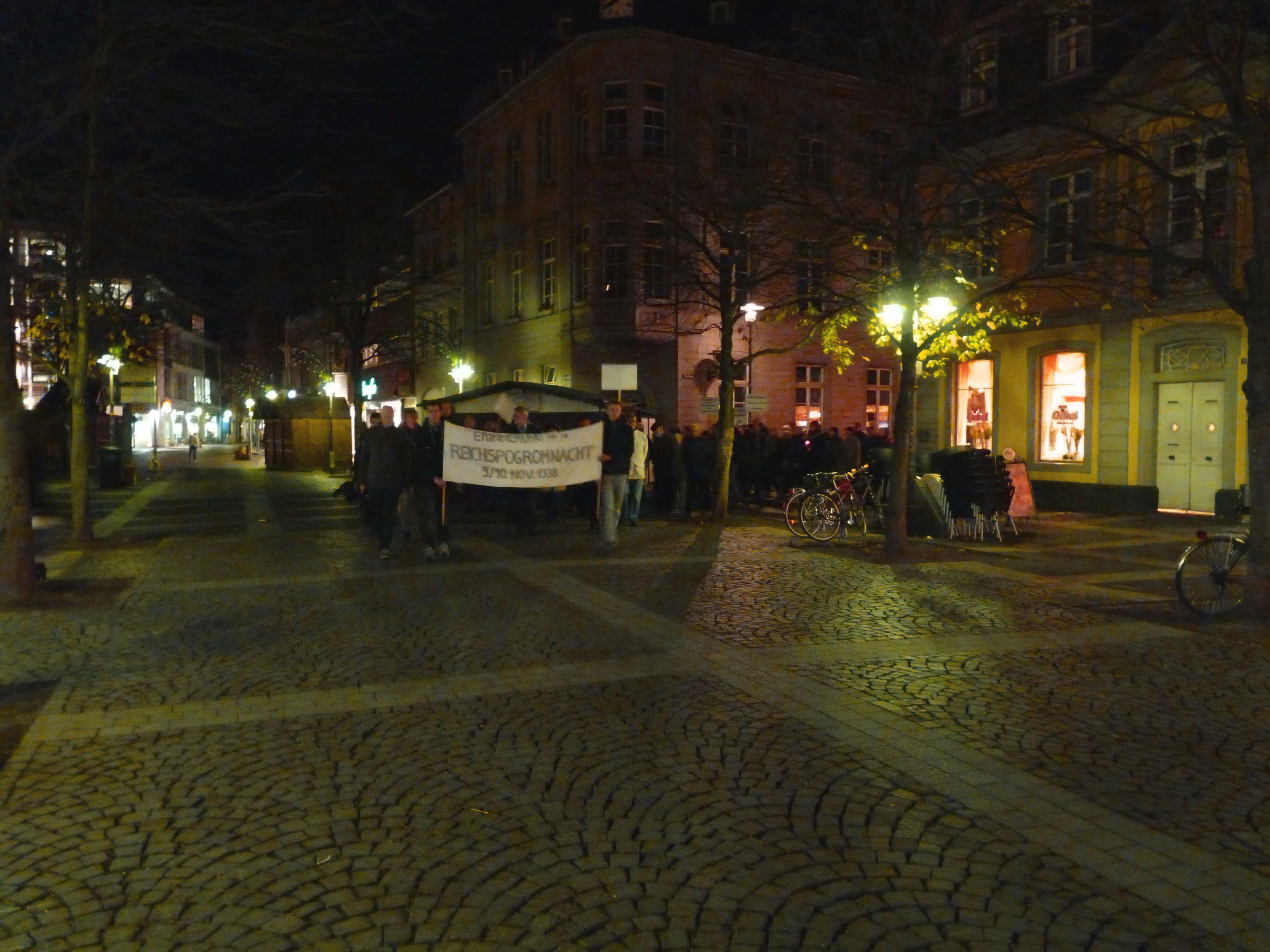 In dieser Pogromnacht, die verhöhnend „Reichskristallnacht“ genannt wurde, überfielen und mißhandelten überall in Deutschland Schlägerbanden der SA und SS Jüdinnen und Juden und schreckten selbst vor Mord nicht zurück. Dem sahen große Teile der Bevölkerung tatenlos oder sogar billigend zu. Das Ergebnis der Verbrechen dieser Tage: 119 jüdische Gotteshäuser wurden angezündet, weitere 76 vollständig verwüstet, 7.500 jüdische Geschäfte geplündert und mehr als 25.000 jüdische Menschen in sogenannte Konzentrationslager gebracht. Mit der Reichspogromnacht begann die brutalste Form der Judenverfolgung, der 65 Jüdinnen und Juden aus Brühl zum Opfer fielen.