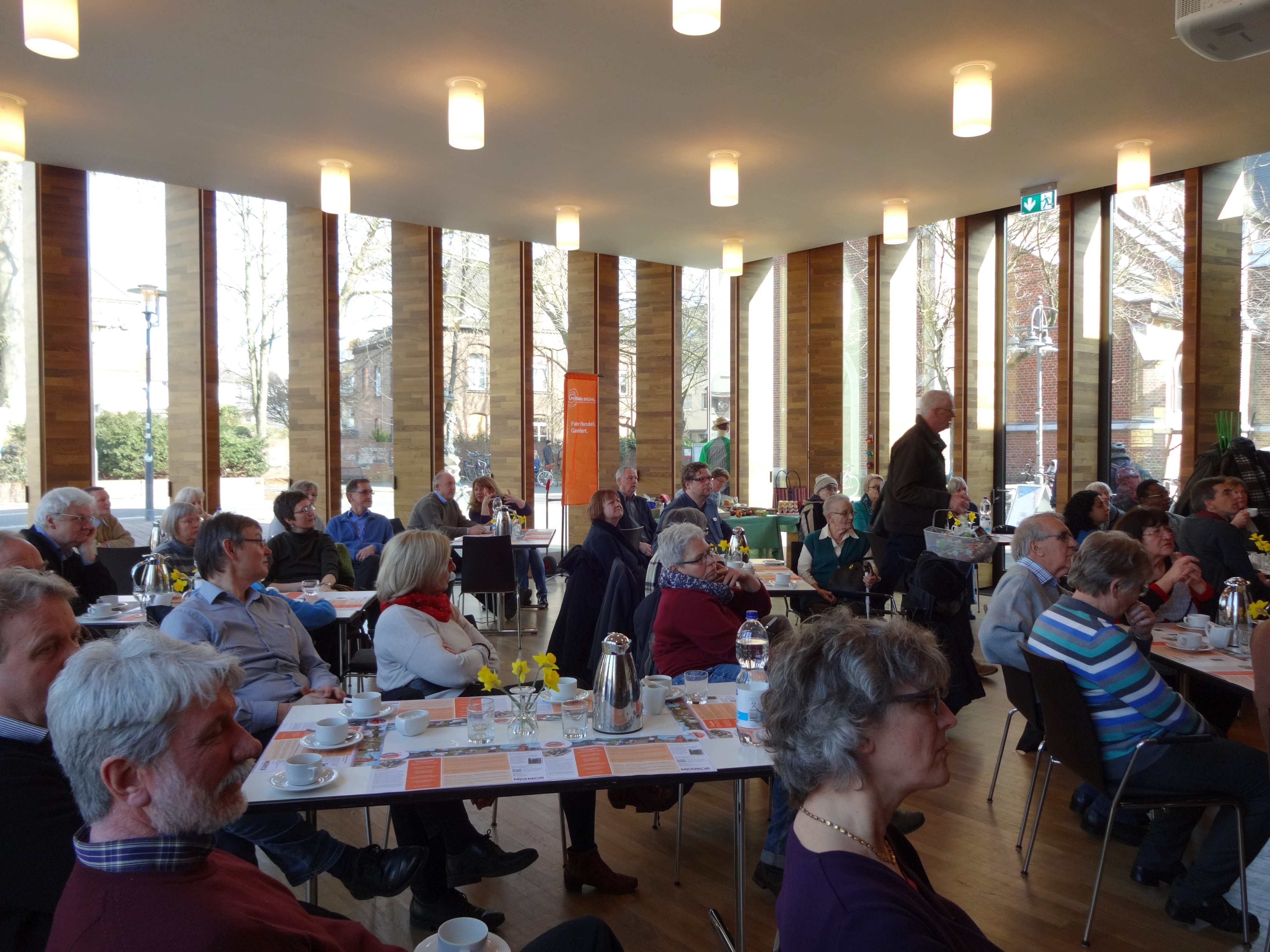 als Symbole eine bestimmte Ausrichtung zum Ausdruck bringen. Die Gottesdienstbesucher sammelten dann Begriffe, die für sie zur Gerechtigkeit gehören. Im anschließenden Vortrag im Begegnungszentrum margaretaS vertiefte Dieter Richarz die Thematik und zeigte die Dimensionen des Projektes auf. Misereor arbeitet gemeinsam mit der Kommission Landpastoral (CPT), die die Kleinbauern in allen Fragen der ökologischen Landwirtschaft und in Rechtsfragen berät. Für die Mitarbeiterinnen und Mitarbeiter ist das ein gefährlicher Job, da sie von den mächtigen Befürwortern des Stauseeprojektes massiv bedroht werden.
