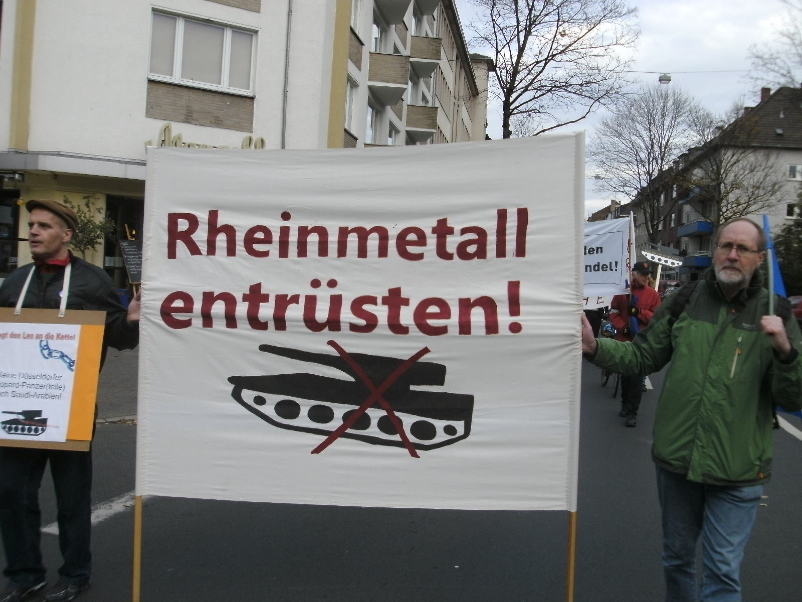 Die PC-Gruppen Bonn und Düsseldorf haben sich mehrfach an Aktionen gegen Rüstungsexporte beteiligt. Es gab Proteste vor Rheinmetall in Düsseldorf und in der Düsseldorfer Innenstadt. Die Bonner Gruppe hat mehrfach Infostände in Bonner Innenstadt gemacht, Unterschriften gesammelt und unseren Modell-Leo vorgestellt.